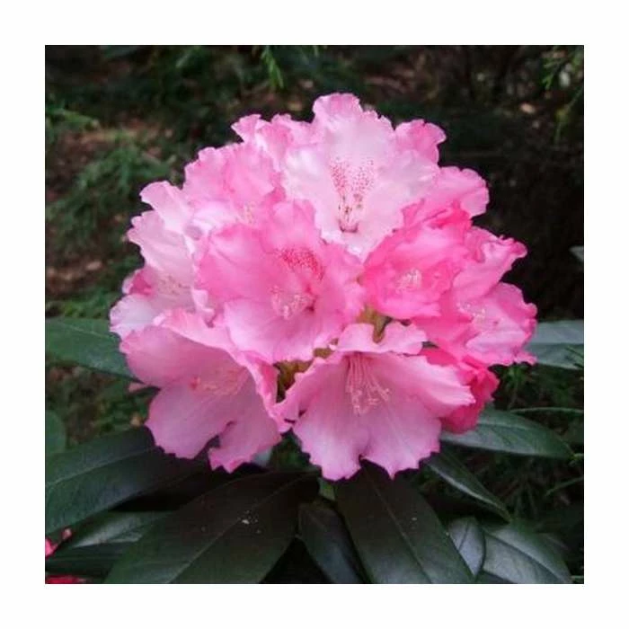 Soft pink flowers in May. Compact evergreen shrub. Very reliable and free flowering.